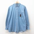 L★古着 長袖 シャツ メンズ 犬 コットン ボタンダウン 紺 デニム【spe】 26apr24