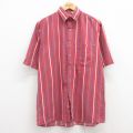 L★古着 ピューリタン 半袖 シャツ メンズ 00年代 00s ボタンダウン 赤他 ストライプ