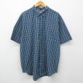 XL★古着 ベーシックエディションズ 半袖 シャツ メンズ 00年代 00s 大きいサイズ ロング丈 ボタンダウン 紺他 ネイビー チェック 24apr12 中古 トップス