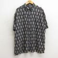 【商品名】 XL★古着 半袖 シャツ メンズ 総柄 大きいサイズ レーヨン 紺他