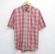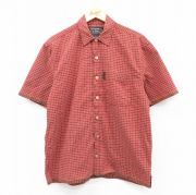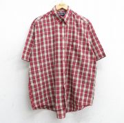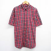 XL★古着 半袖 シャツ メンズ 大きいサイズ ボタンダウン 赤他 チェック