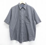 XL★古着 半袖 シャツ メンズ 00年代 00s 大きいサイズ ロング丈 グレー他 ストライプ