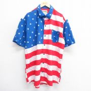 XL★古着 半袖 シャツ メンズ 星条旗 大きいサイズ ロング丈 赤他
