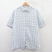 XL★古着 半袖 シャツ メンズ 大きいサイズ ロング丈 薄紺他 チェック