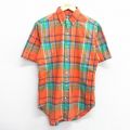 M★古着 ラルフローレン Ralph Lauren 半袖 ブランド シャツ メンズ 90年代 90s ワンポイントロゴ コットン ボタンダウン オレンジ他 チェック 25mar31 中古 トップス