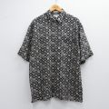 【商品名】 L★古着 ピエールカルダン 半袖 ブランド シャツ メンズ 90年代 90s 総柄 レーヨン 黒他