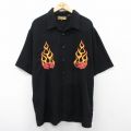 XL★古着 半袖 シャツ メンズ 00年代 00s ラスベガス サイコロ ファイヤーパターン ロング丈 開襟 オープンカラー 黒他
