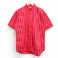 L★古着 半袖 シャツ メンズ コットン ボタンダウン エンジ他 ストライプ