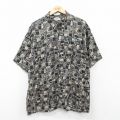 XL★古着 半袖 シャツ メンズ 00年代 00s 大きいサイズ レーヨン 黒他
