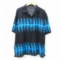 【商品名】 XL★古着 半袖 シャツ メンズ ファイヤーパターン レーヨン 開襟 オープンカラー 黒他【spe】