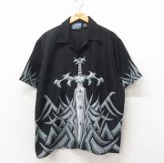 XL★古着 半袖 シャツ メンズ 剣 開襟 オープンカラー 黒