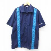XL★古着 半袖 シャツ メンズ 00年代 00s バイク ロング丈 開襟 オープンカラー 黒他