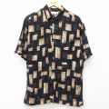 S★古着 半袖 シャツ メンズ 総柄 レーヨン 黒他