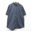 【商品名】 XL★古着 カーハート 半袖 シャツ メンズ 大きいサイズ ロング丈 コットン ボタンダウン 濃紺