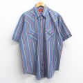 【商品名】 XL★古着 ELY 半袖 ウエスタン シャツ メンズ 90年代 90s 薄紺他 ストライプ