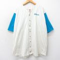 【商品名】 XL★古着 ウィルソン 半袖 ベースボール シャツ メンズ 90年代 90s ワンポイントロゴ 大きいサイズ ロング丈 コットン 生成り他 ストライプ【spe】