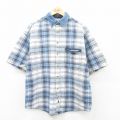 XL★古着 半袖 シャツ メンズ 90年代 90s コットン 襟デニム 紺他 ネイビー チェック 25apr09 中古 トップス