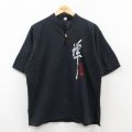 【商品名】 L★古着 半袖 シャツ メンズ 禅 刺繍 コットン 黒【spe】