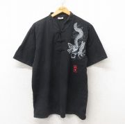 L★古着 半袖 チャイナ トップス メンズ 龍 コットン 黒