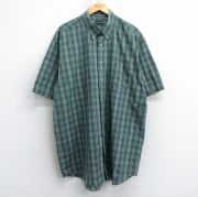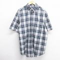 【商品名】 XL★古着 半袖 シャツ メンズ 大きいサイズ ロング丈 ボタンダウン 白他 チェック