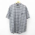 XL★古着 半袖 シャツ メンズ 大きいサイズ ロング丈 ボタンダウン 白他 チェック