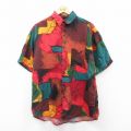 L★古着 GOOUCH 半袖 シャツ メンズ 90年代 90s 総柄 シルク 赤他 レッド 25apr17 中古 トップス