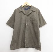 XL★古着 ノーティカ 半袖 ブランド パジャマ シャツ メンズ 90年代 90s ワンポイントロゴ コットン 開襟 オープンカラー ベージュ チェック
