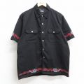 L★古着 半袖 シャツ メンズ 00年代 00s 花柄 シルク 黒