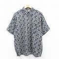 XL★古着 半袖 シャツ メンズ 00年代 00s 総柄 コットン 紺他