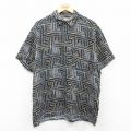 XL★古着 半袖 シャツ メンズ 00年代 00s 総柄 大きいサイズ リネン 紺他