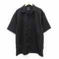 XL★古着 半袖 シャツ メンズ ロング丈 開襟 オープンカラー 黒 ブラック 25apr18 中古 トップス