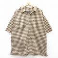 XL★古着 ショーンジョン 半袖 シャツ メンズ 大きいサイズ ロング丈 開襟 オープンカラー グレー チェック