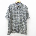 【商品名】 XL★古着 IZOD 半袖 シャツ メンズ 総柄 レーヨン 紺他