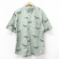 XL★古着 半袖 シャツ メンズ 魚 コットン ボタンダウン 緑系