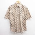 【商品名】 L★古着 半袖 シャツ メンズ 00年代 00s 総柄 コットン ボタンダウン ベージュ他