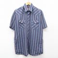 XL★古着 ラングラー 半袖 ウエスタン シャツ メンズ 90年代 90s 紺他 ストライプ