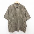XL★古着 半袖 シャツ メンズ 00年代 00s 総柄 大きいサイズ シルク ベージュ系他