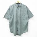 XL★古着 半袖 シャツ メンズ 90年代 90s 大きいサイズ ロング丈 コットン ボタンダウン 緑系他