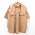 XL★古着 半袖 シャツ メンズ 大きいサイズ ロング丈 コットン ボタンダウン 茶系 ブラウン 25apr23 中古 トップス