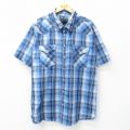 XL★古着 半袖 ウエスタン シャツ メンズ 大きいサイズ ロング丈 紺他 ネイビー チェック 25apr23 中古 トップス