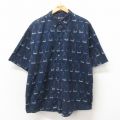 XL★古着 半袖 シャツ メンズ 00年代 00s 総柄 大きいサイズ コットン ボタンダウン 紺他
