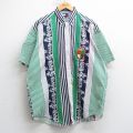 XL★古着 半袖 シャツ メンズ 90年代 90s 大きいサイズ ロング丈 コットン ボタンダウン 緑系他