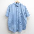 L★古着 半袖 シャツ メンズ コットン ボタンダウン エンジ他 ストライプ