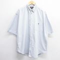 XL★古着 ラルフローレン チャップス 半袖 ブランド シャツ メンズ 90年代 90s ワンポイントロゴ オックスフォード 大きいサイズ コットン ボタンダウン USA製 薄紺他 ストライプ