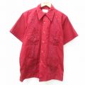 【商品名】 L★古着 半袖 キューバ シャツ メンズ 90年代 90s エンジ