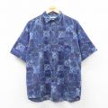 L★古着 半袖 シャツ メンズ 90年代 90s 総柄 コットン 紺他 ネイビー 25apr30 中古 トップス