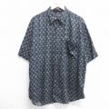 【商品名】 XL★古着 半袖 シャツ メンズ 00年代 00s 総柄 ロング丈 レーヨン 黒他
