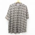 XL★古着 半袖 シャツ メンズ 総柄 ロング丈 レーヨン ノーカラー 黒他 ブラック 25may01 中古 トップス
