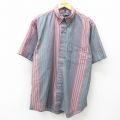 XL★古着 バンヒューセン 半袖 シャツ メンズ 90年代 90s ボタンダウン 薄紺他 ネイビー ストライプ 25may07 中古 トップス
