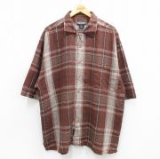 XL★古着 半袖 シャツ メンズ 00年代 00s 大きいサイズ リネン 開襟 オープンカラー 茶他 チェック